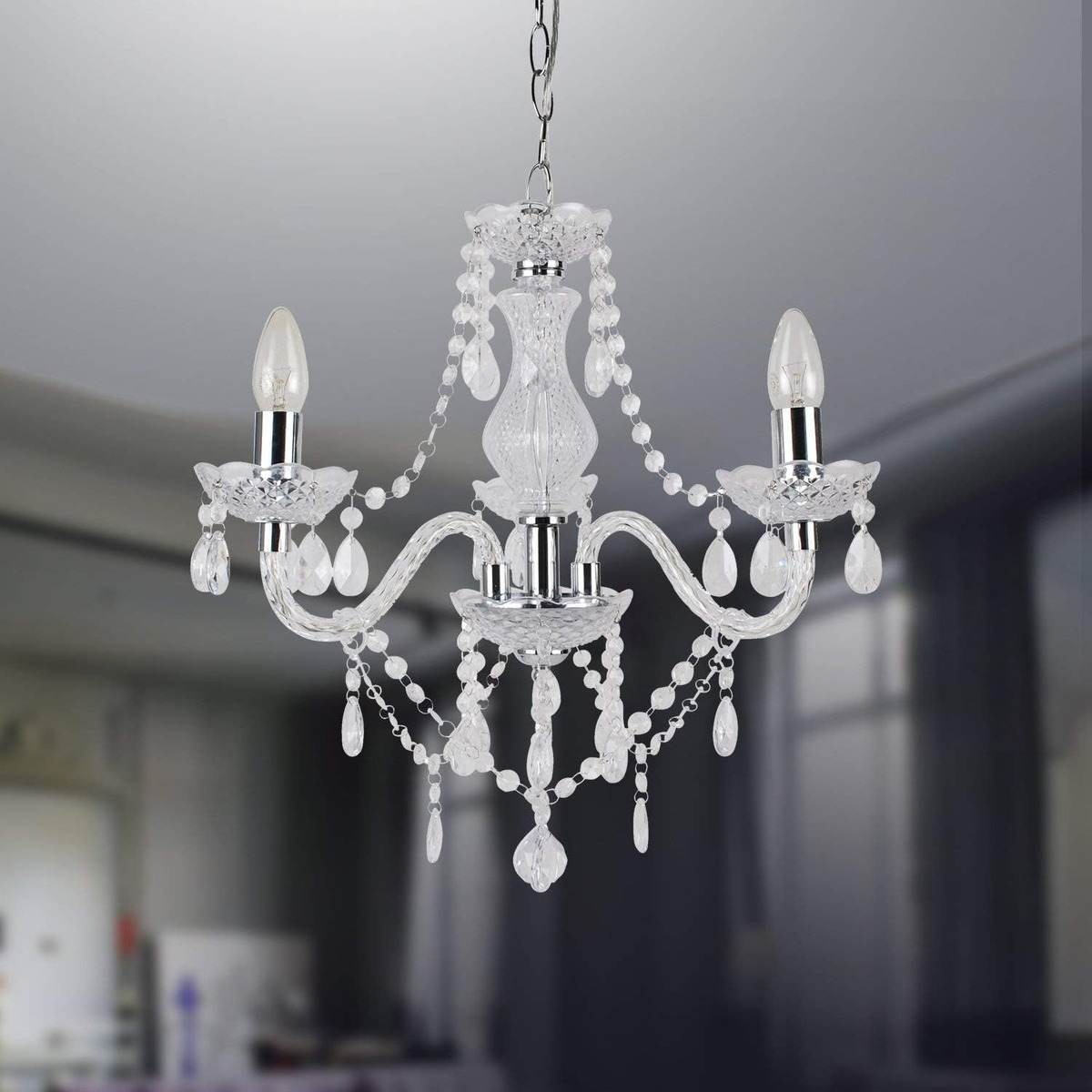 Luminaria Araña Colgante 3 Luces Con Caireles De Vidrio