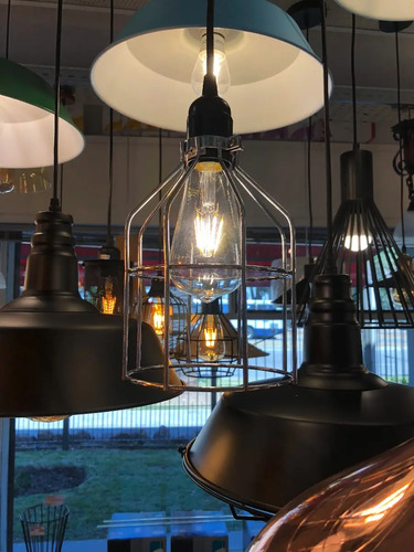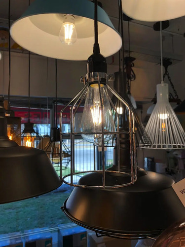 Luminaria Colgante Cromado Jaula Metal Vintage Retro. E27