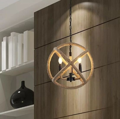 Luminaria Colgante Cuerda Soga Átomo 3 Luces Rustico Vintage