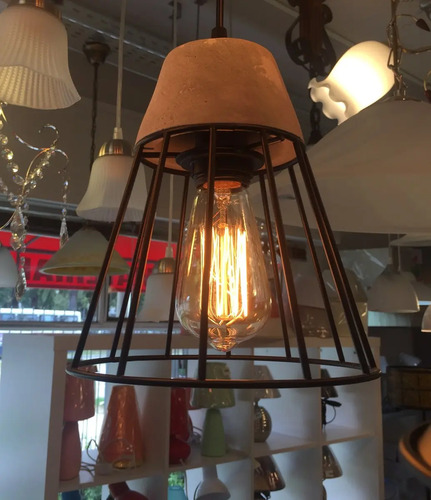 Luminaria Colgante Vintage Industrial Cemento. Filamento