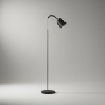 Portátil de pie con brazo articulado y campana metálica. Altura 1700 mm, base 250 mm y portalámpara E27.