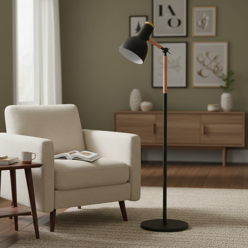 Luminaria Portatil De Pie Madera Y Metal Articulada 170cm