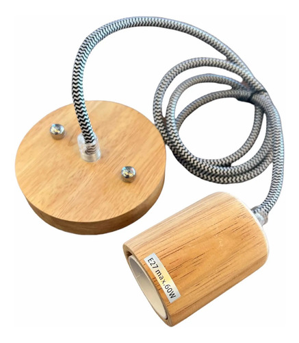 Portalámparas Colgante Madera Cable De Tela Vintage Nórdico
